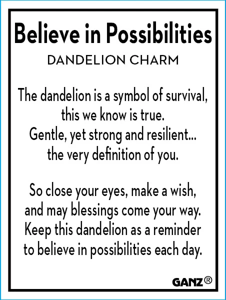 The dandelion is a symbol of survival, this we know is true. Gently, yet strong and resilient…the very definition of you. So close your eyes, make a wish, and may blessings come your way. Keep this dandelion as a reminder to believe in possibilities each day.