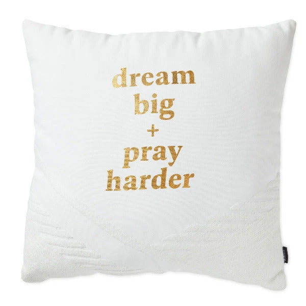 - On pillow: Dream big + pray harder.