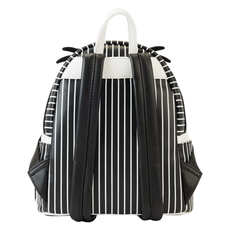The Loungefly Nightmare Before Christmas Jack Pumpkin Head Mini Backpack is made of vegan leather (polyurethane). Bag has adjustable shoulder straps and sturdy metal hardware. Additional features include applique, debossed, quilted, and printed details. Take note of the coordinating inside lining.