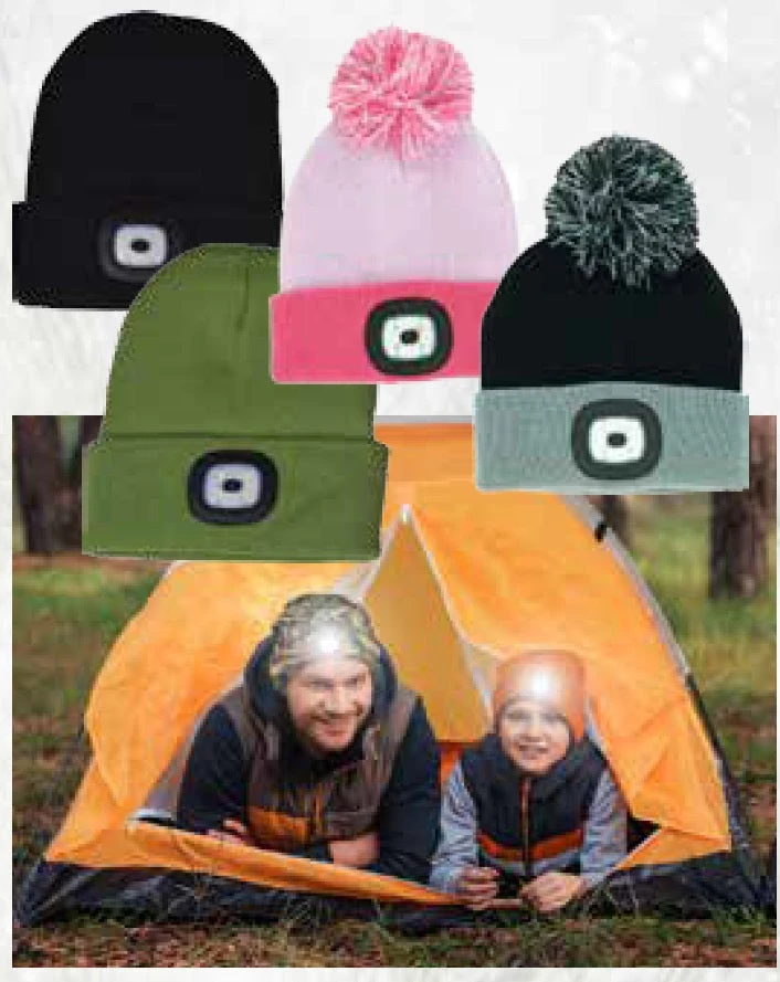 - Light-up LED beanie features three brightness settings and a rechargeable light.