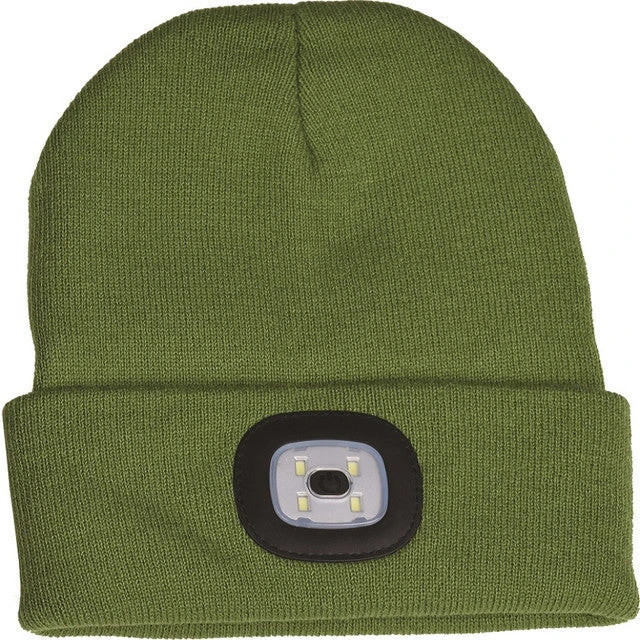 - Light-up LED beanie features three brightness settings and a rechargeable light.