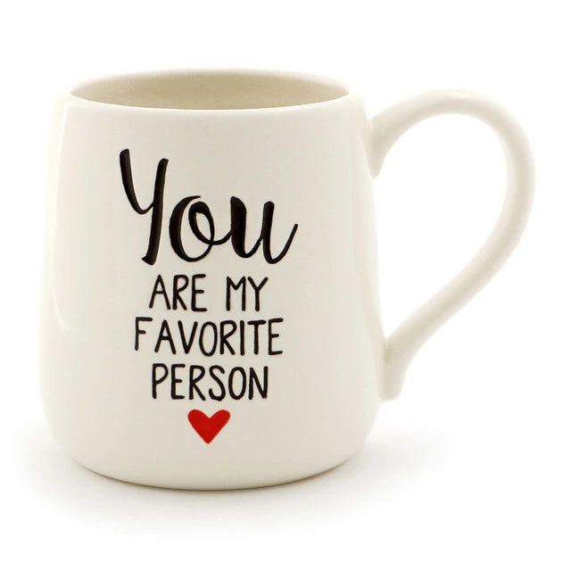 Whether it’s from a friend or lover, it’s always nice to hear when you’re someone’s favorite person. This heartfelt stoneware coffee mug is a beautiful anniversary, Valentine’s Day, or just because gift for a special person. 16 oz. capacity. Dishwasher and microwave safe.