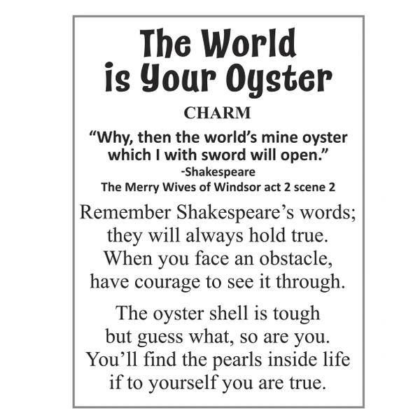 The World is Your Oyster Charm: “Why, then the world’s mine oyster which I with sword will open.” – Shakespeare, The Merry Wives of Windsor, Act 2 Scene2.