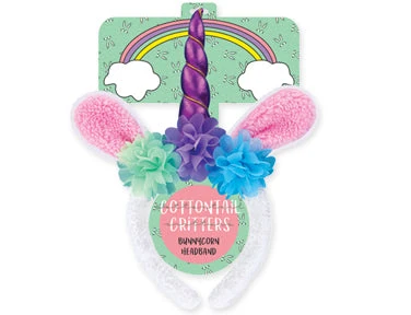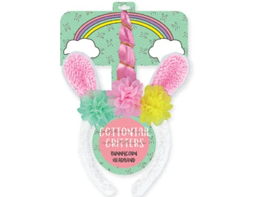Add a whimsical touch to your springtime holiday with Cottontail Critters Bunnycorn Headbands! Fluffy rabbit ears with three styles of oversized rosettes and shining unicorn horns. Perfect for Easter baskets, parades and parties. One size fits most.